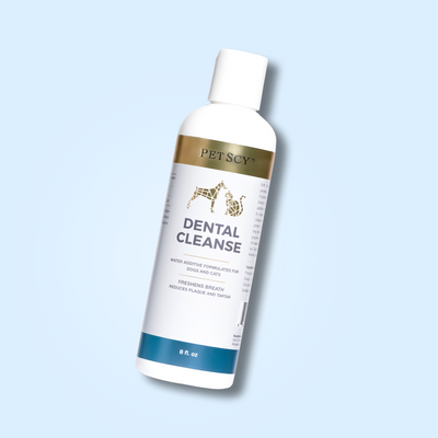 Struggling with the hassle of brushing your pet’s teeth at home? PetScy’s Dental Cleanse offers a hassle-free solution for healthier, whiter teeth and fresher breath. This daily water additive effectively targets yellow tartar and the compounds responsible for bad dog breath without the need for difficult tooth brushing.