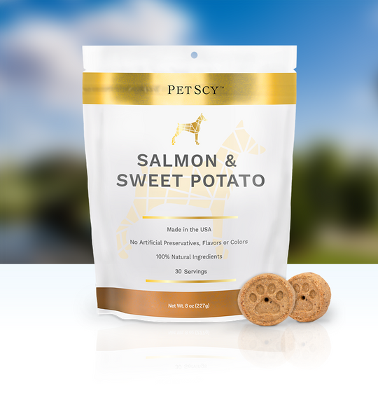 PetScy’s Salmon & Sweet Potato Treats are made with fresh salmon and all natural organic sweet potatoes uniquely sourced that your dog will get excited about. Each treat is packed with rich omega fatty acids and essential nutrients to help support your dog’s healthy body.