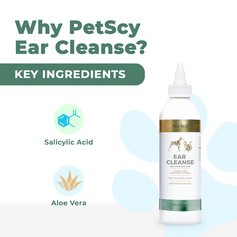 PetScy’s Ear Cleanse is meticulously crafted with ingredients to ensure the highest level of care for your dog's ear health. This advanced formula not only soothes irritation and eliminates unpleasant odors, but also actively supports the overall well-being of your dog's inner ear.