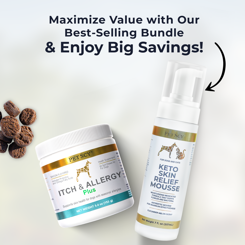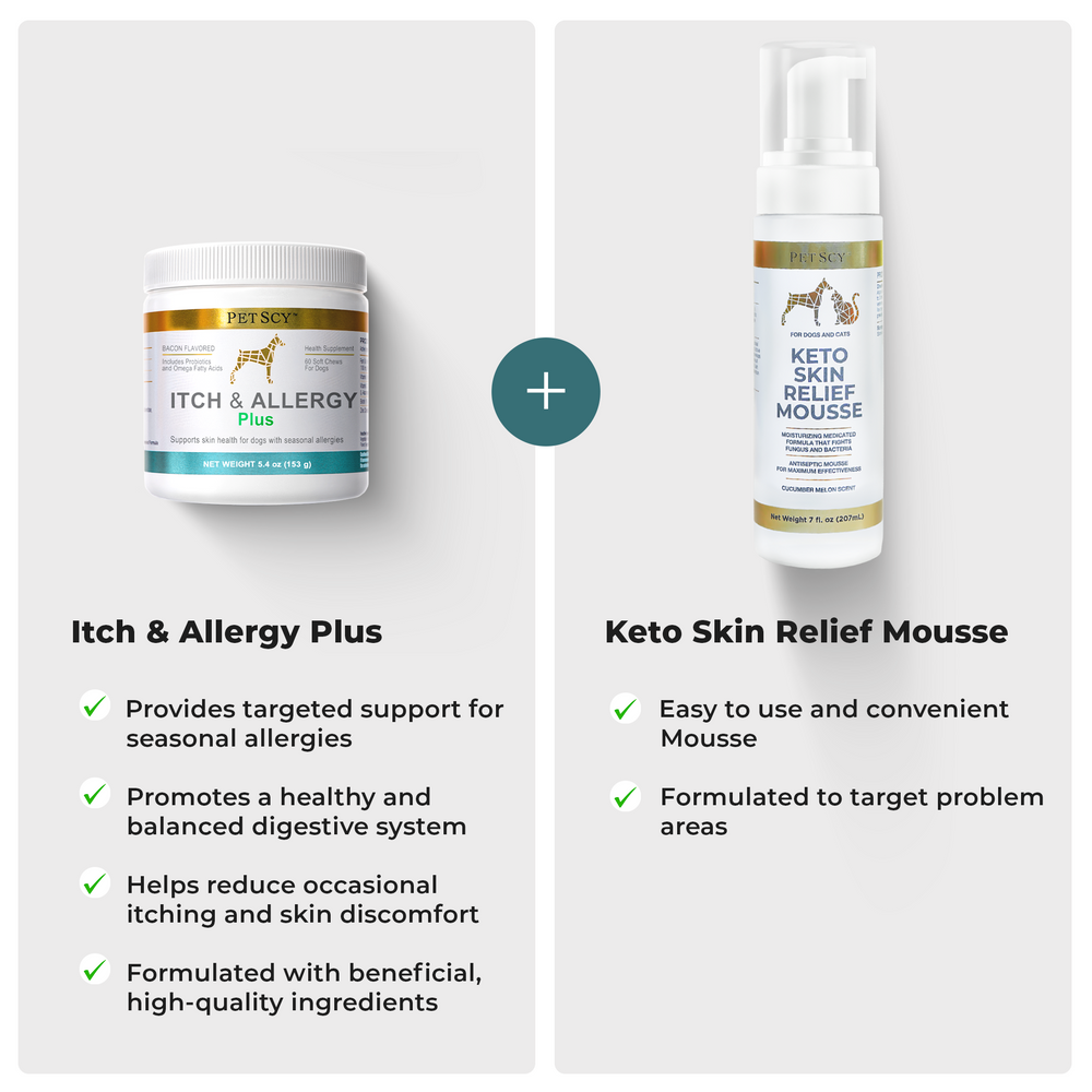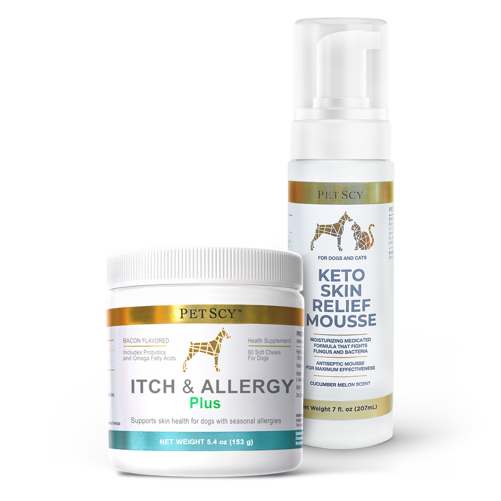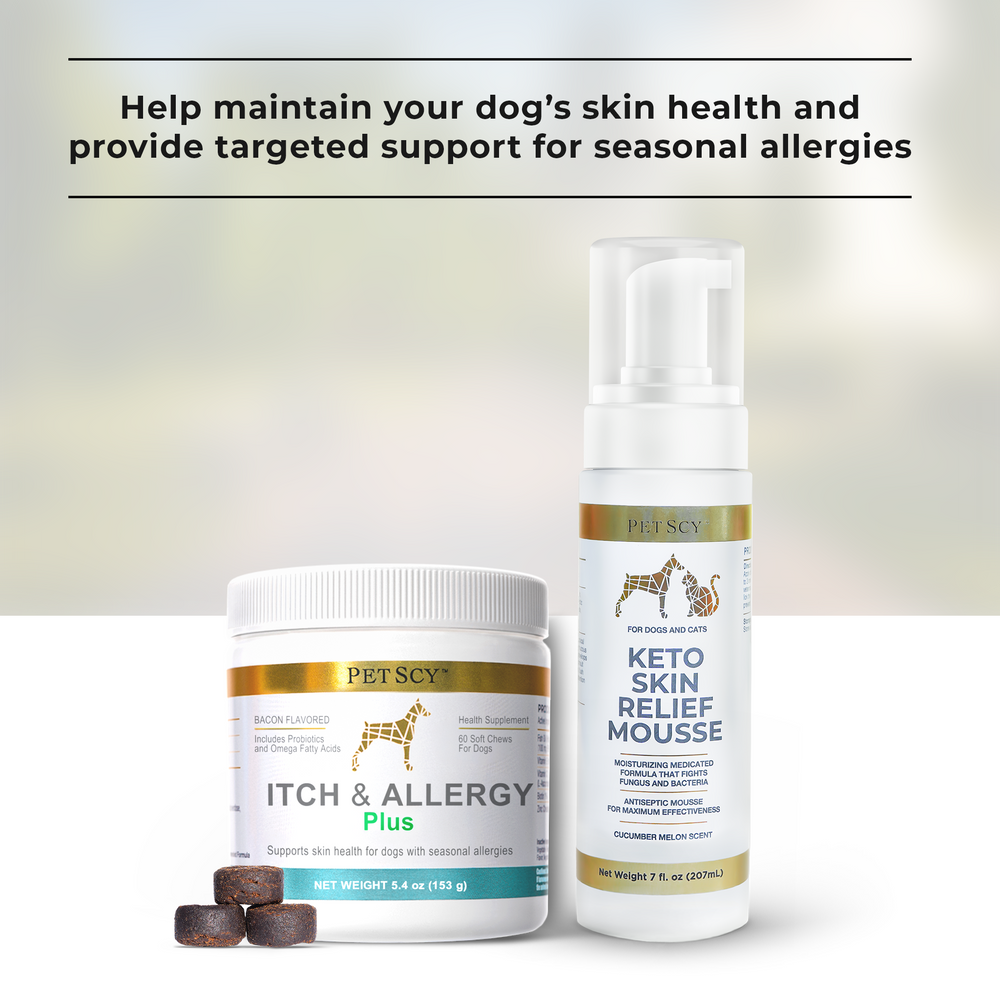 Our proprietary blend of probiotics and tart cherry supports digestive health and Immune function while helping to maintain a normal inflammatory response. These ingredients work together to support overall wellness, including skin health. Itch & Allergy Plus Chews provide a natural way to help maintain normal histamine levels and promote comfort in pets.Keto Skin Relief Mousse