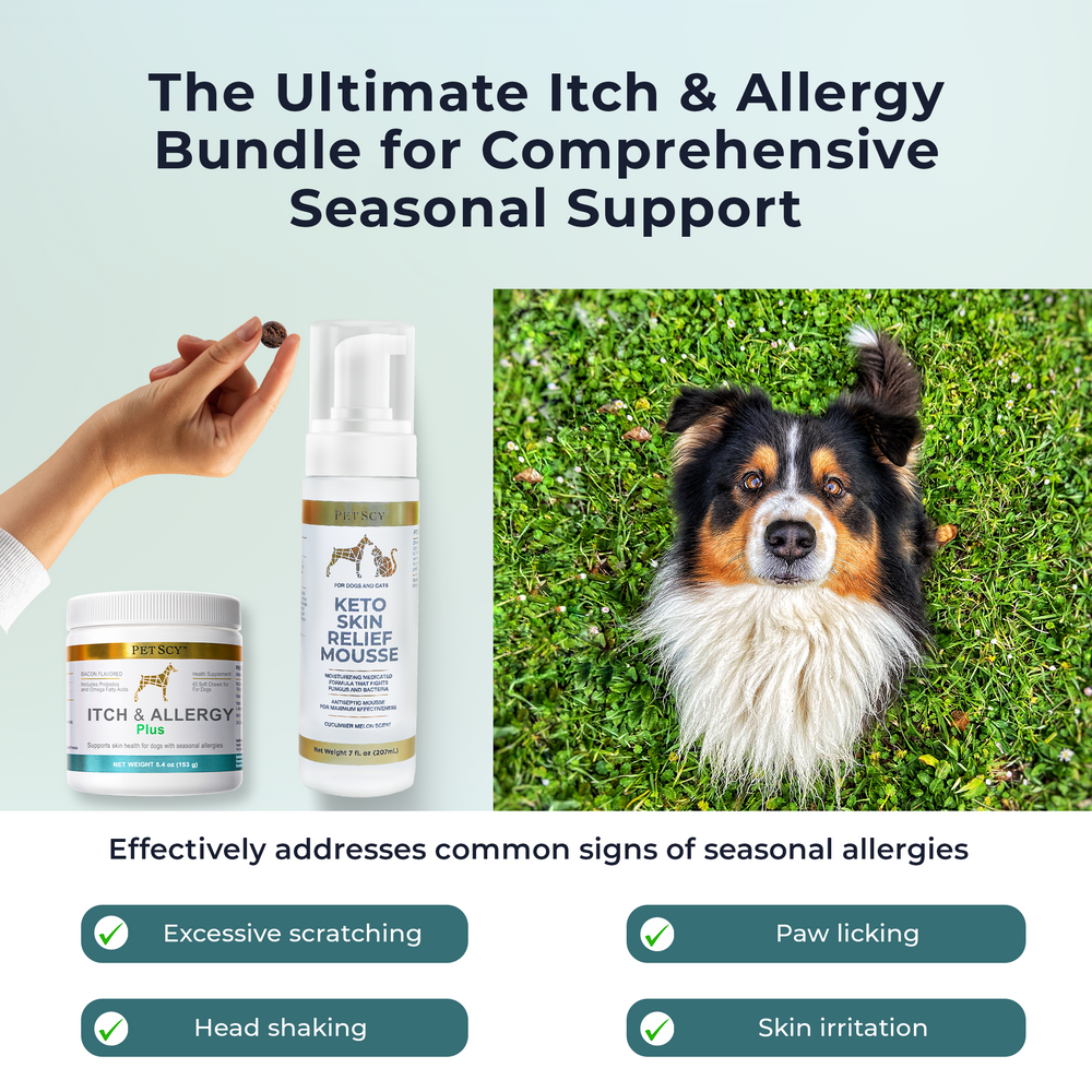 Address skin sensitivities and paw licking with advanced probiotics for dogs with seasonal allergies. Our Itch & Allergy Plus soft chews are expertly formulated to target seasonal allergy discomfort at the source, featuring a proprietary blend of probiotics and high-quality, skin-supporting ingredients.