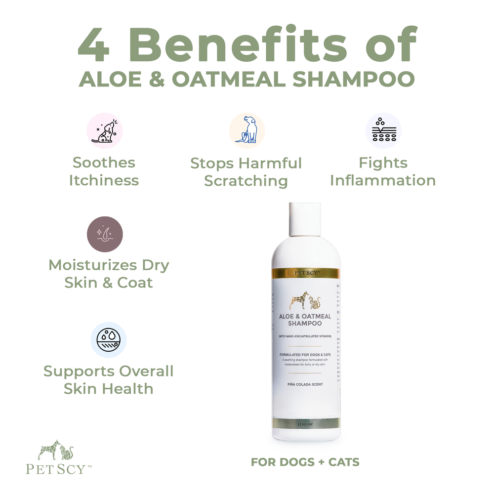 PetScy’s Aloe & Oatmeal Shampoo is meticulously formulated with a premium blend of Aloe Barbadensis and Hydrolyzed Oat Protein, specifically designed to provide superior hydration and soothing relief for dry or occasionally irritated skin.