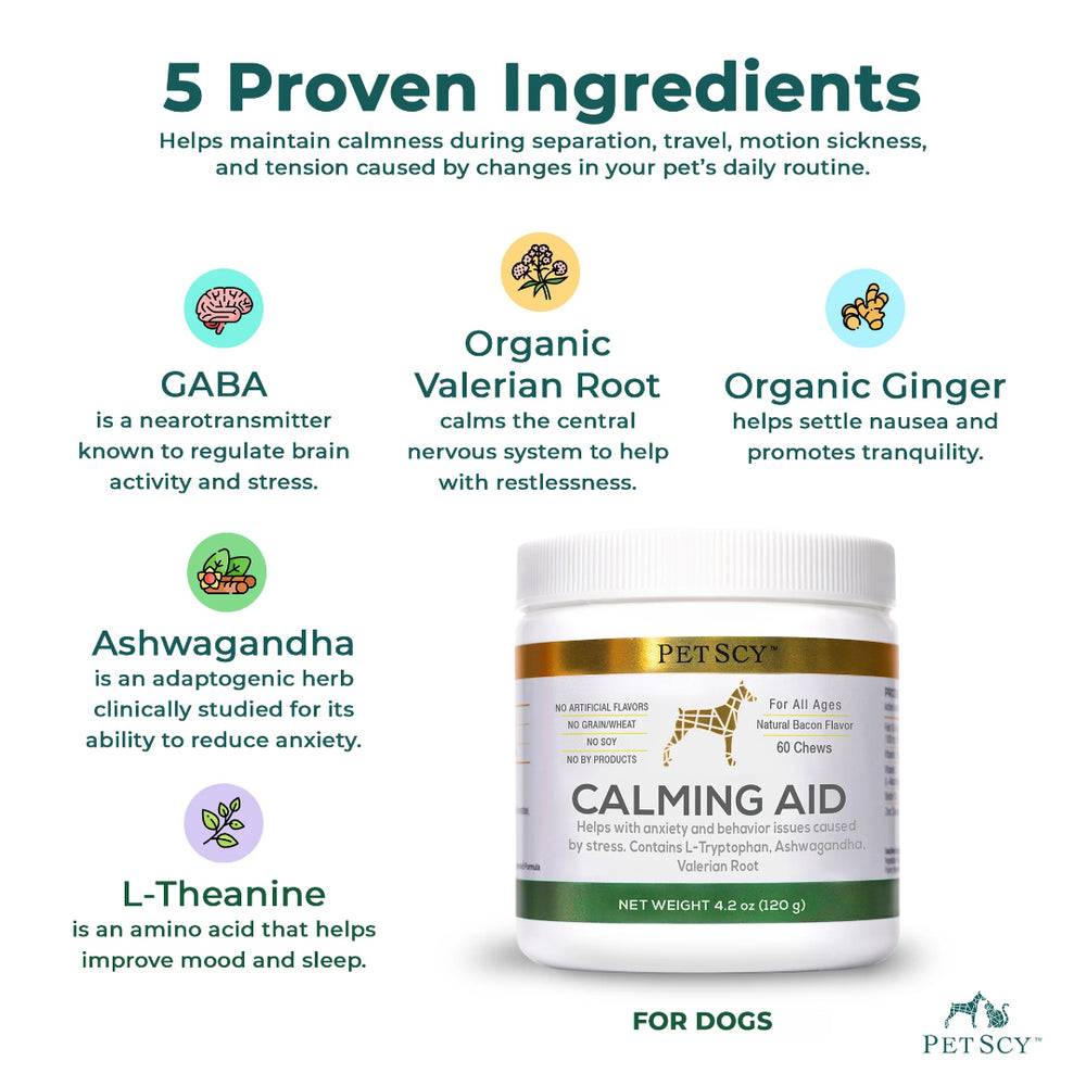 Anxiety and stress are not exclusive to humans; pets can also experience stress and restlessness due to loud noises, new environments, or separation. To address this, we developed our all-natural Calming Aid to provide pets with extra peace of mind. Our formula combines L-Theanine and GABA to promote relaxation and reduce stress. PetScy’s Calming Aid helps steady your pet's nerves and promote overall relaxation. A better mood means a happier pet!