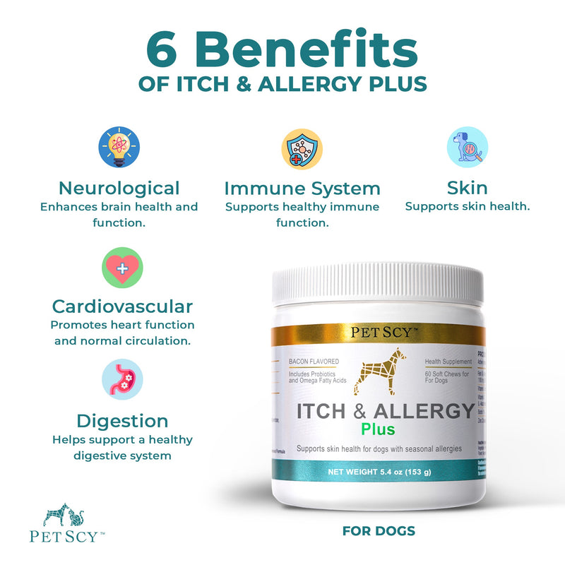 - CWCraig W. M.Verified BuyerReviewingItch & Allergy Plus ChewsI recommend this productRated 5 out of 5 stars5 days agoBeneficial supplements for my dog