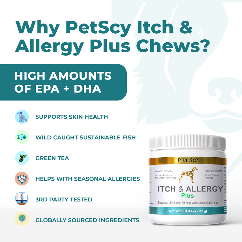 Was this helpful?PetScyYesterdayHi Cheryl! Thank you so much for this amazing review and for taking the time to share your experience with the Itch & Allergy Plus Chews! We're absolutely thrilled to hear that they've been such a game-changer for your pup. It sounds like he was really struggling with that uncomfortable itching, and we're so happy that PetScy was able to provide the relief he needed. There's nothing better than seeing our furry friends comfortable and happy again! We truly appreciate you choosing our product and are so glad both you and your dog are loving the results. Your success story really makes our day!