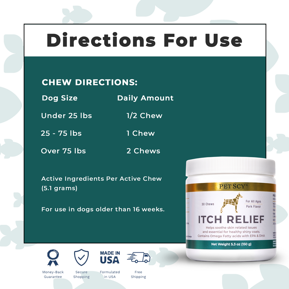 By addressing key areas of health, including joint mobility, heart function, immune support, and cognitive performance, PetScy’s Itch Relief Chews deliver a comprehensive solution to keep your pet thriving.
