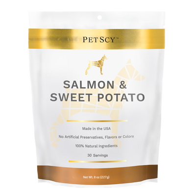 PetScy’s Salmon & Sweet Potato Treats are made with fresh salmon and all natural organic sweet potatoes uniquely sourced that your dog will get excited about. Each treat is packed with rich omega fatty acids and essential nutrients to help support your dog’s healthy body.