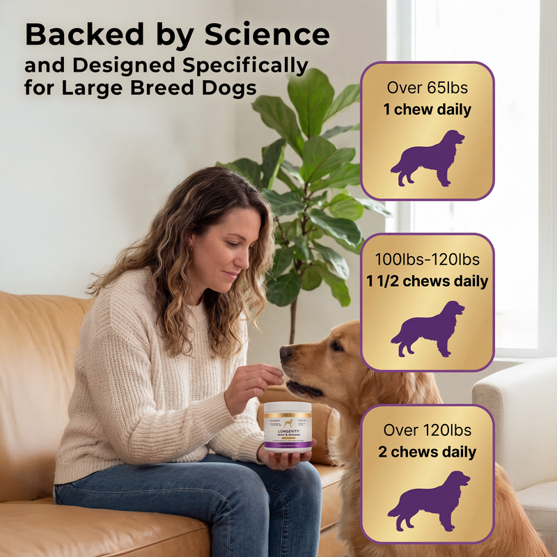 To further enhance whole-body longevity, PetScy’s Longevity Joint & Immune Chews include Bacillus coagulans probiotics to support digestive health, nutrient absorption, and immune function. Together, these ingredients create a complete daily longevity solution—supporting joint comfort, immune strength, and vitality so your dog can thrive at every stage of life.